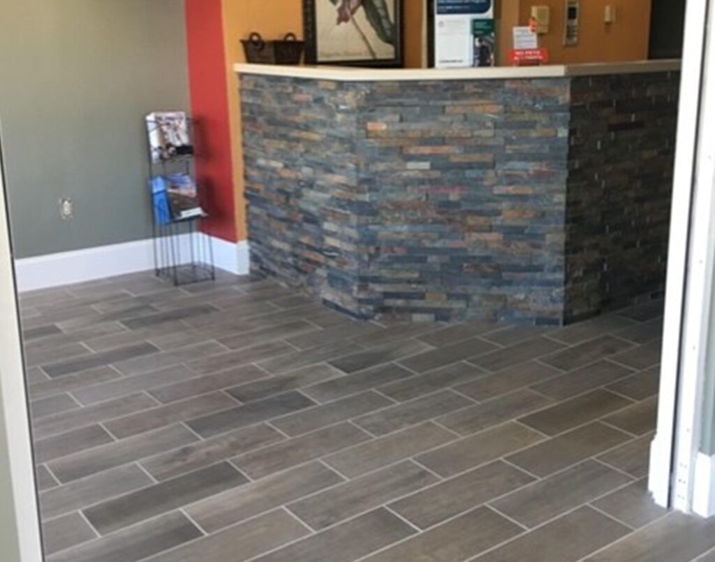 Clearing the work surface from dust, debris, and obstructions. Preparing the work surface by applying adhesive, grouting, or other appropriate materials. Laying wood, carpeting, tiles, concrete, and other types of flooring.